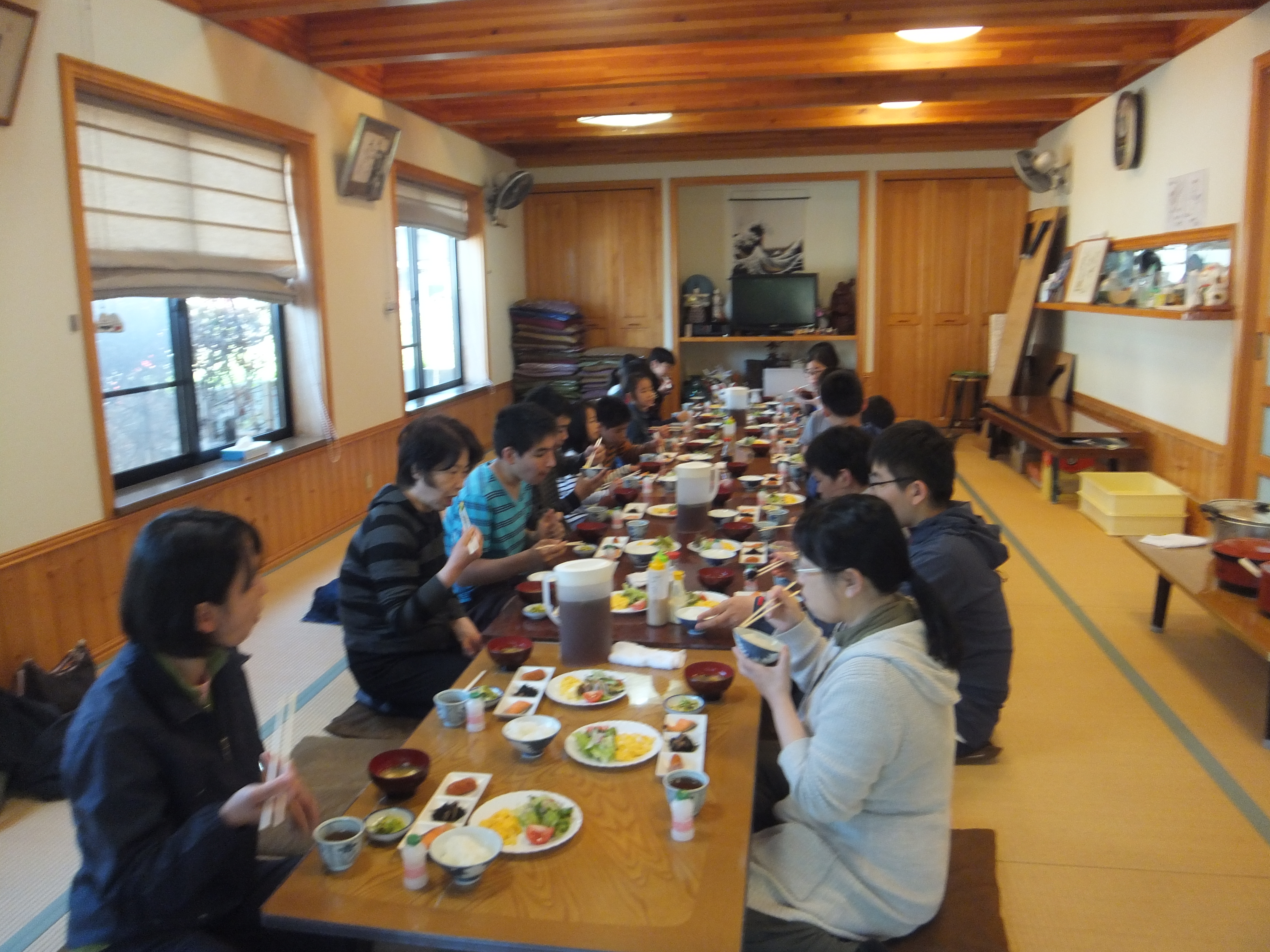 宿舎での楽しい食事風景。