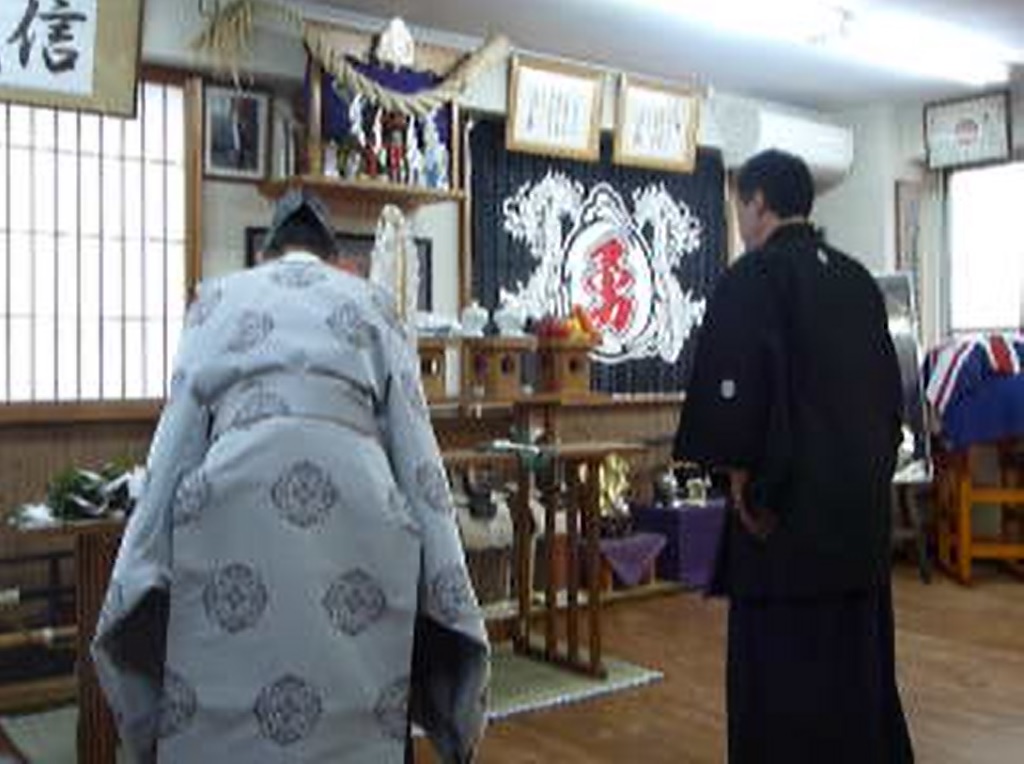宗家と一門の稽古生たち、ご来賓をはじめとする勇心門に深く関わって頂いた方々にご臨席を頂き厳かに開催されました。