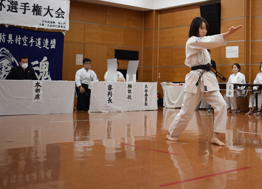 小学生、中学生、高校生、一般の容試合、高校・一般女子組手と粛々と試合展開されました。