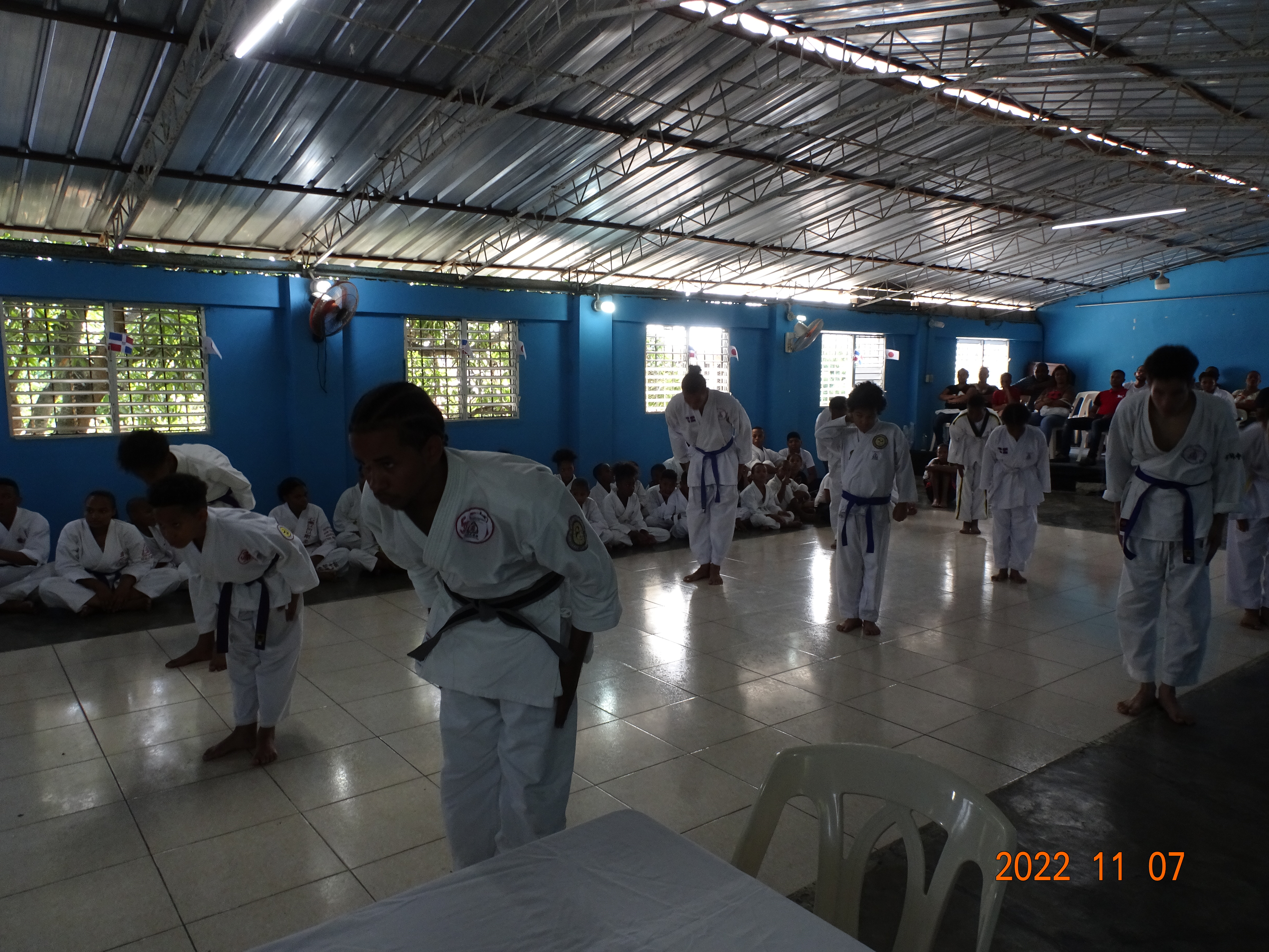 翌日は少し離れたハイナ道場を訪問、サントドミンゴと違いのどかな地域でビエンベニード師範はじめ熱心な指導者達と生徒達の熱気と情熱がストレートに伝わってきました。大人は勿論のこと子供たちの礼儀正しさに心から畏敬の念をいだきました。その外、プンタカナ、サマナから道場指導者達が参加し着々と中崎宗家先生の勇心門魂が根づきつつあると体感しました。