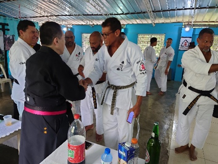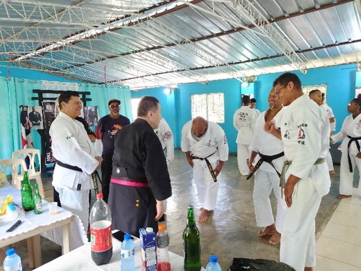 夜は師範方々とのミーティング翌日はドミニカ勇心門本部道場の新道場開き、師範方々との実技講習と稽古生との触れ合いの時間をとりました。
